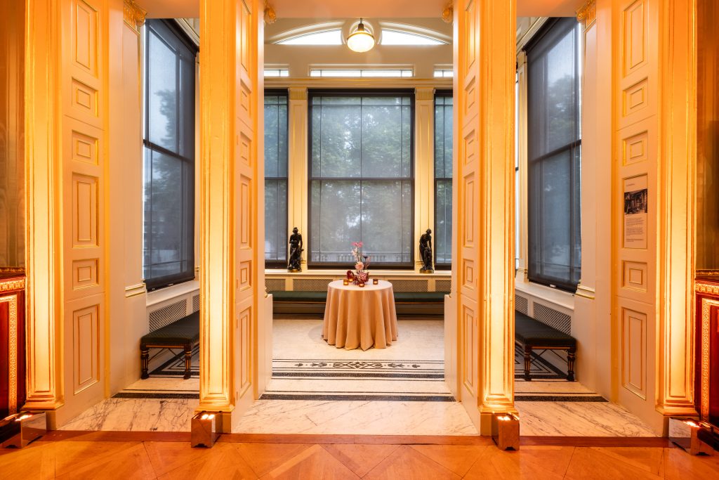 An elegant evening among friends and supporters began with welcome drinks in the Drawing Room Suite, surrounded by treasured masterpieces, before moving into the magnificent Great Gallery for a seated dinner to remember, transformed for the evening with rich chestnut linens and seasonal autumnal florals.